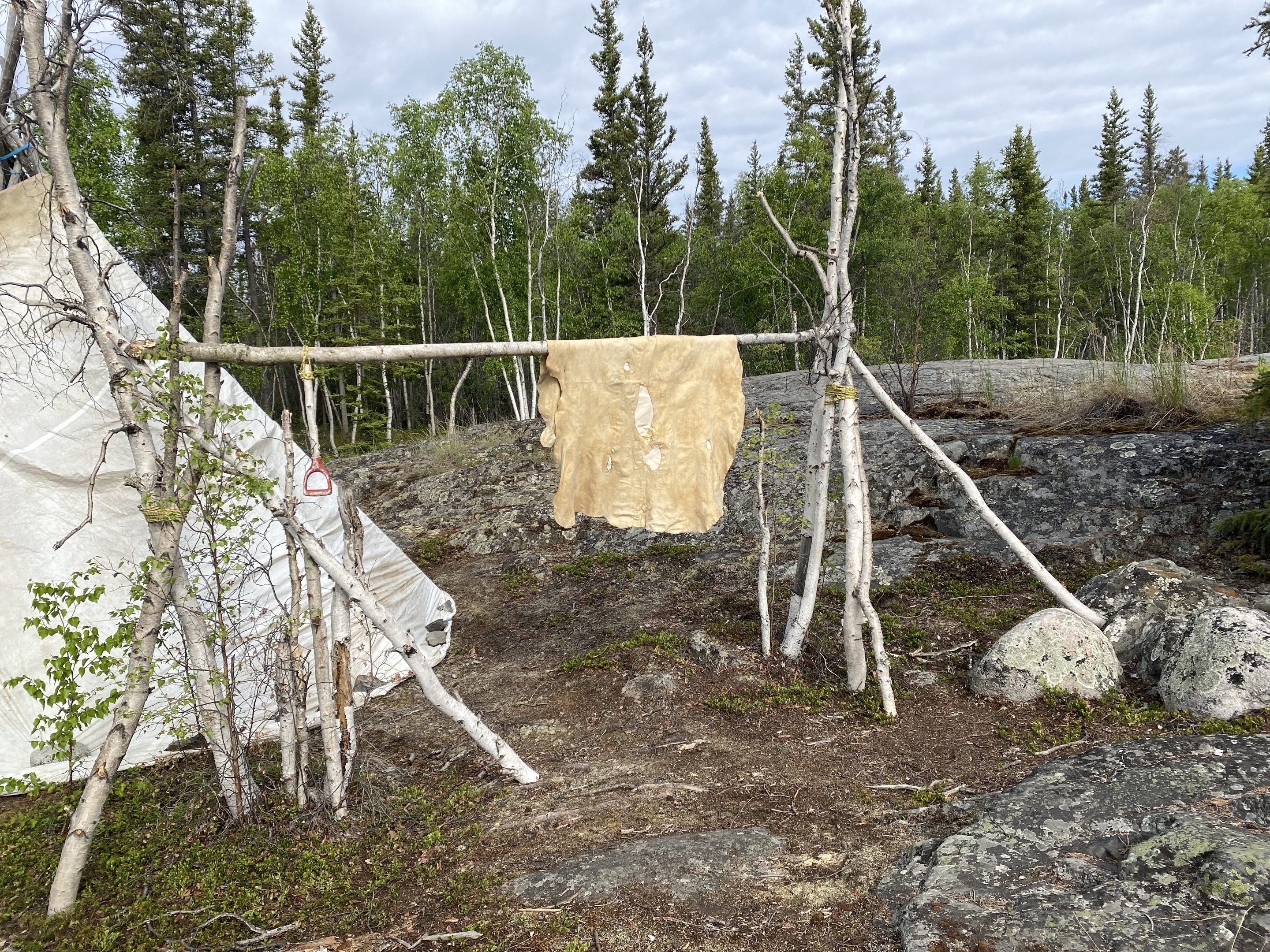 Spännband, regel, björk- och rönnstammar och grenar.